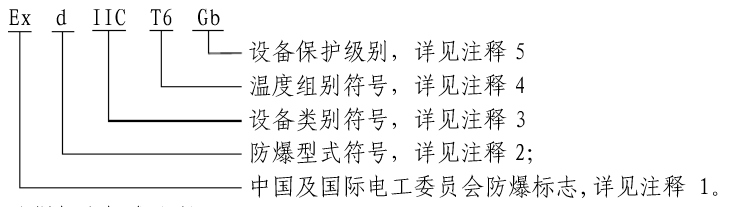 注释1:Ex是中国及国际电工委员会的国产AV麻豆美艳房东MAD026标志,表明电气设备符合GB3836和IEC60079中所列的一个或多个国产AV麻豆美艳房东MAD026型式
