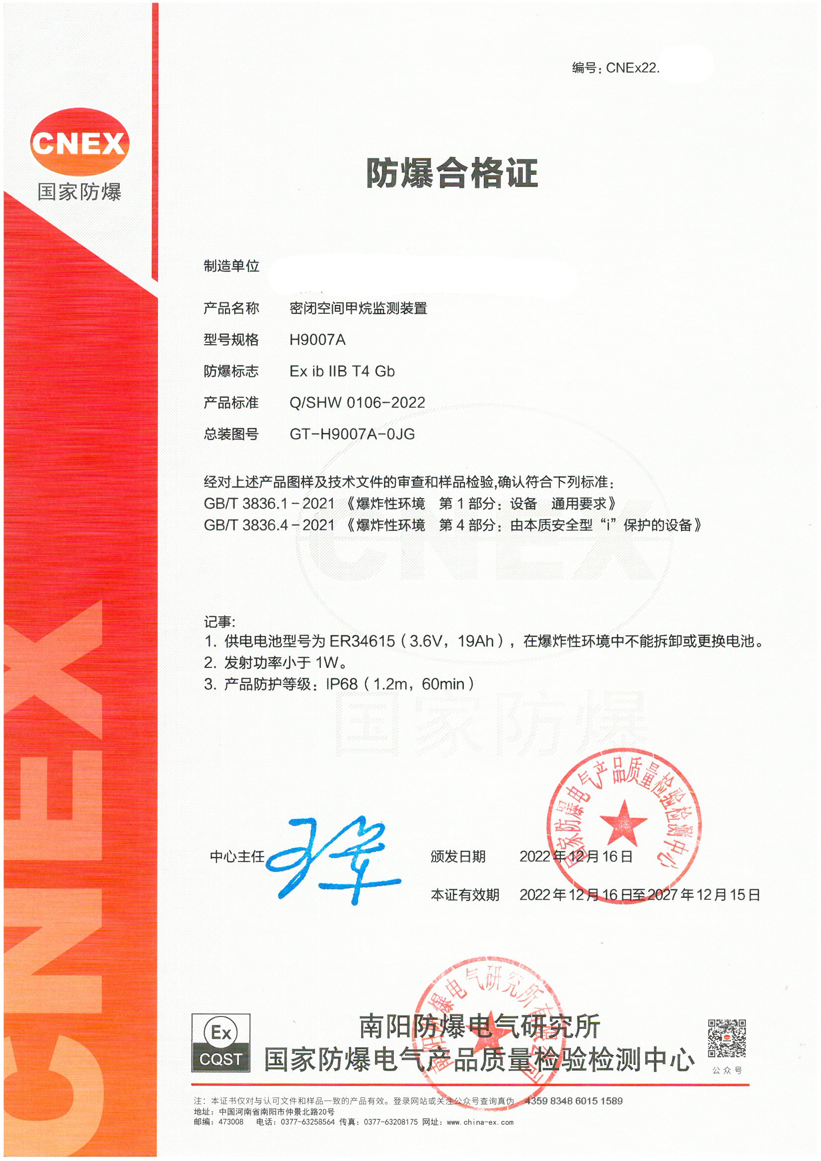 甲烷监测装置办理本安型国产AV麻豆美艳房东MAD026合格证标准要求