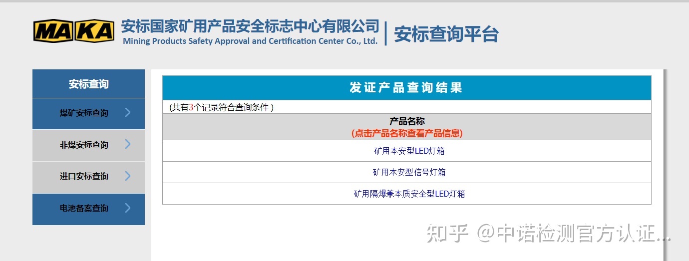 查询安标认证的产品统一网站是国家安标中心,见如下页面: